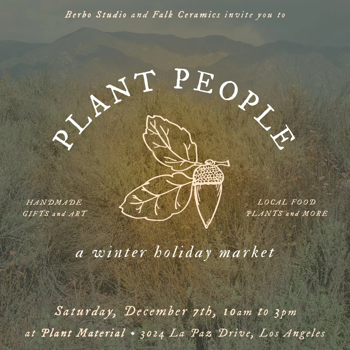 You’re invited to Plant People, a holiday market curated by and for lovers of the natural world. This year, hosted by Laura of Falk Ceramics and Erin of Berbo Studio on Saturday, December 7th at Plant Material in Silverlake.